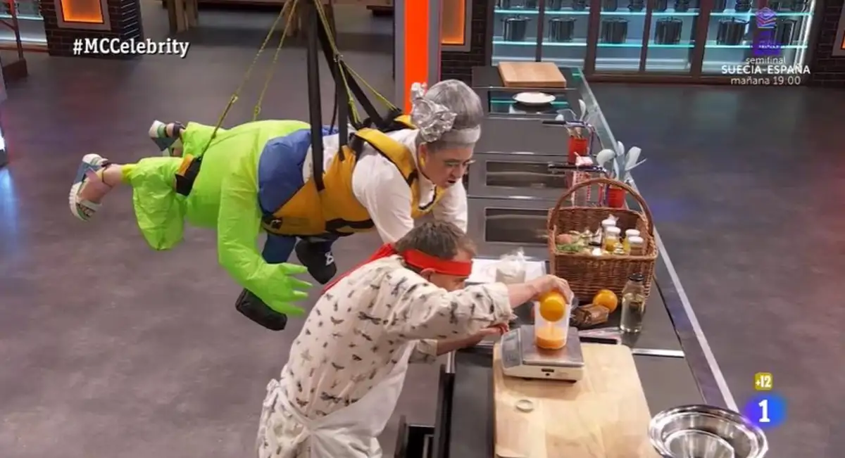Las cocinas se han transformado en una especie de estación espacial, y los aspirantes han tenido que cocinar por parejas suspendidos en el aire, atados con arneses que simulaban la gravedad cero.