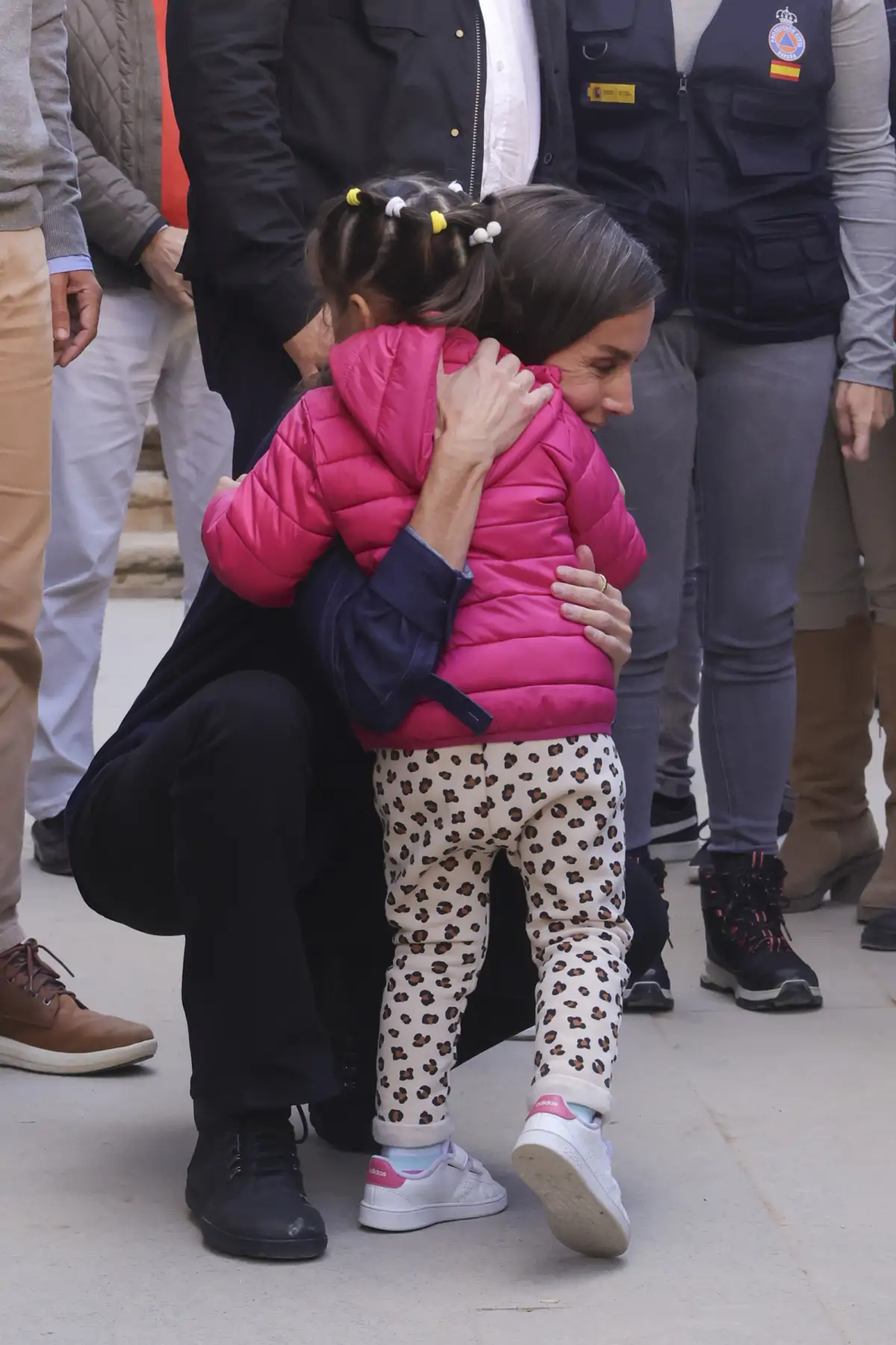 Tras charlar unos minutos con algunos ciudadanos que se acercaron hasta ellos, una pequeña niña con trenzas, Candela, corrió a los brazos de la Reina protagonizando una de las imágenes más entrañables del día.