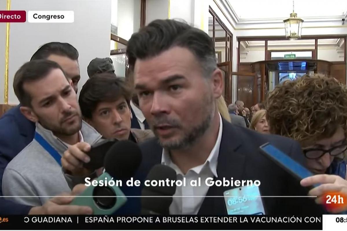 En los pasillos del Congreso, minutos antes de la habitual sesión de control al Gobierno, el diputado de ERC Gabriel Rufián protagonizó uno de los momentos más tensos de la jornada al lanzar duras críticas contra Mazón.